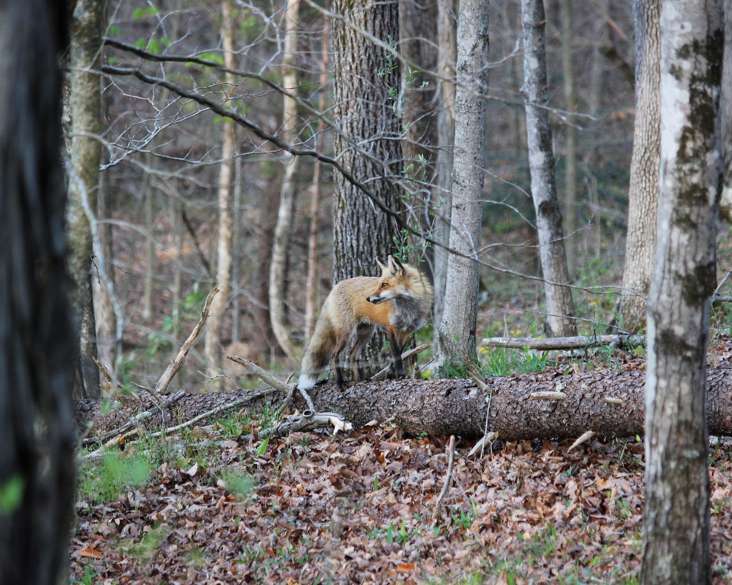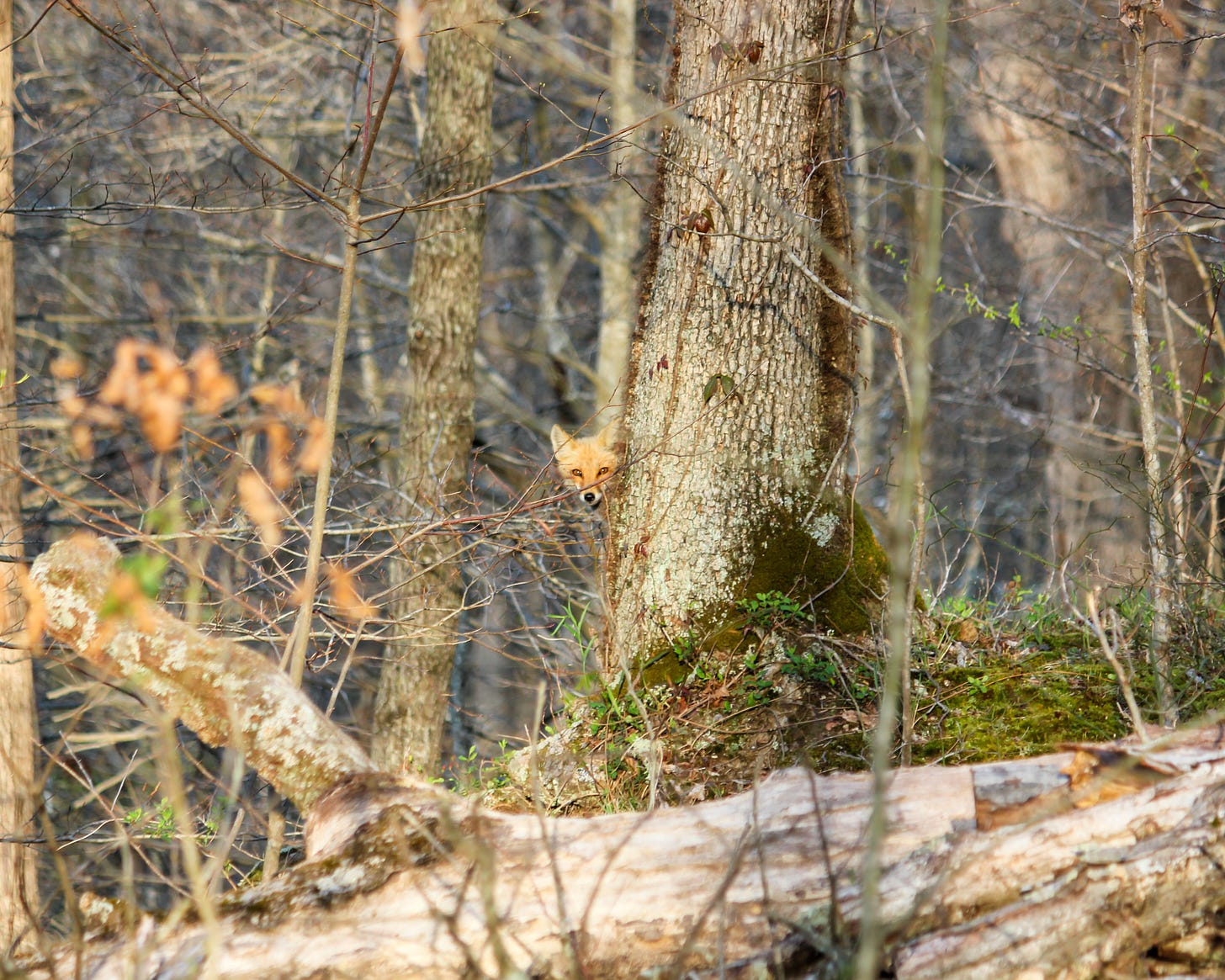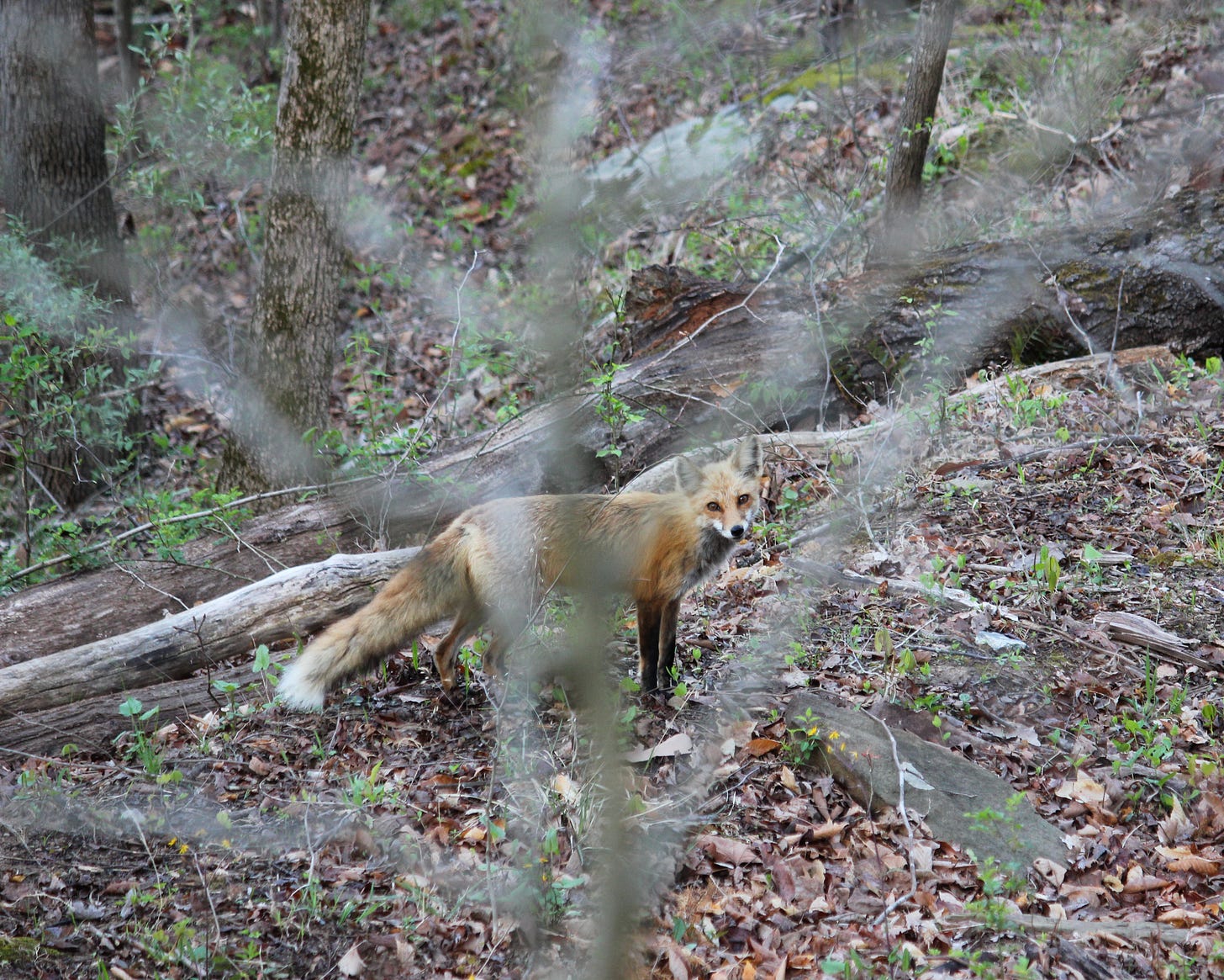 A couple of days in a row earlier this week, I saw a fox (not sure if it was this one) carry a chicken down the cabin road toward the den. Everyone’s got to eat, right? I hope the neighbors down the mountain have noticed the weakness in the fence and have repaired it.