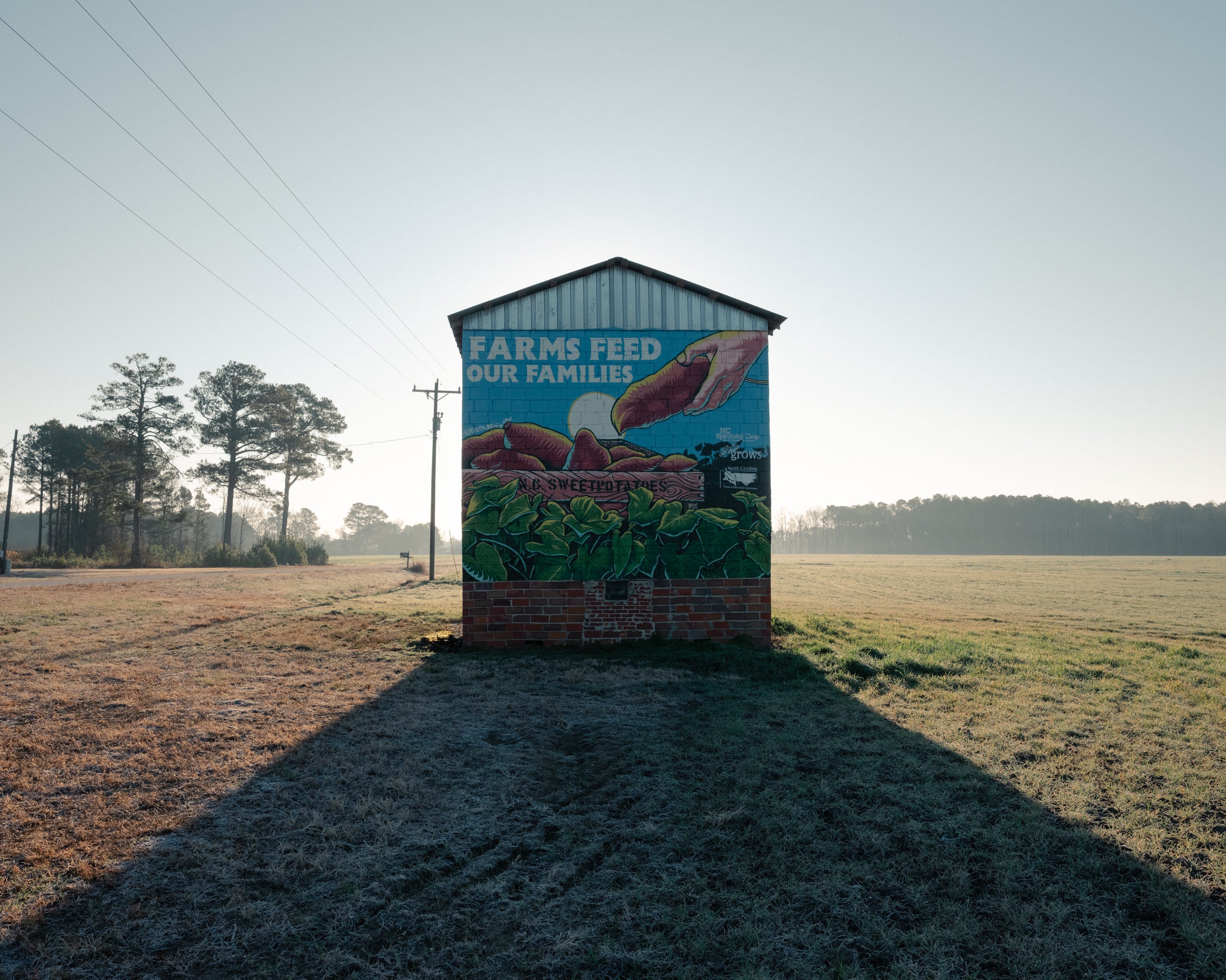 Heading south from Benson, North Carolina, I turned my truck around to photograph the above mural along Highway 50 by Zac Bender, a Raleigh-based muralist, on a barn on J Roland Farms property. This mural is part of Benson’s Public Art Trail.