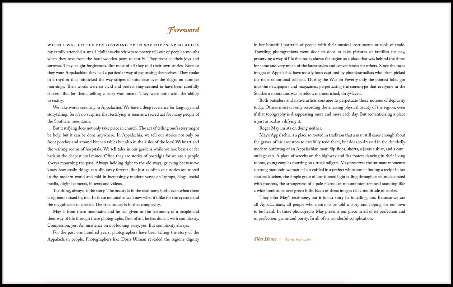 Kentucky Poet Laureate (2023-2024) and dear friend, Silas House, wrote the foreword to my book. I made this picture of him at the wonderful Hindman Settlement School in 2016. When I reached out to him in 2013 to ask if he’d consider writing the foreword, he replied that he’d be glad to and that he’d used some of my work in his Defining Appalachia class at Berea College. I’m as humbled today as I was then.